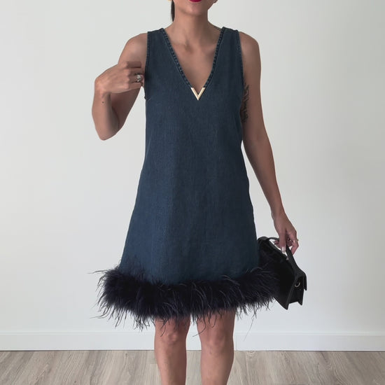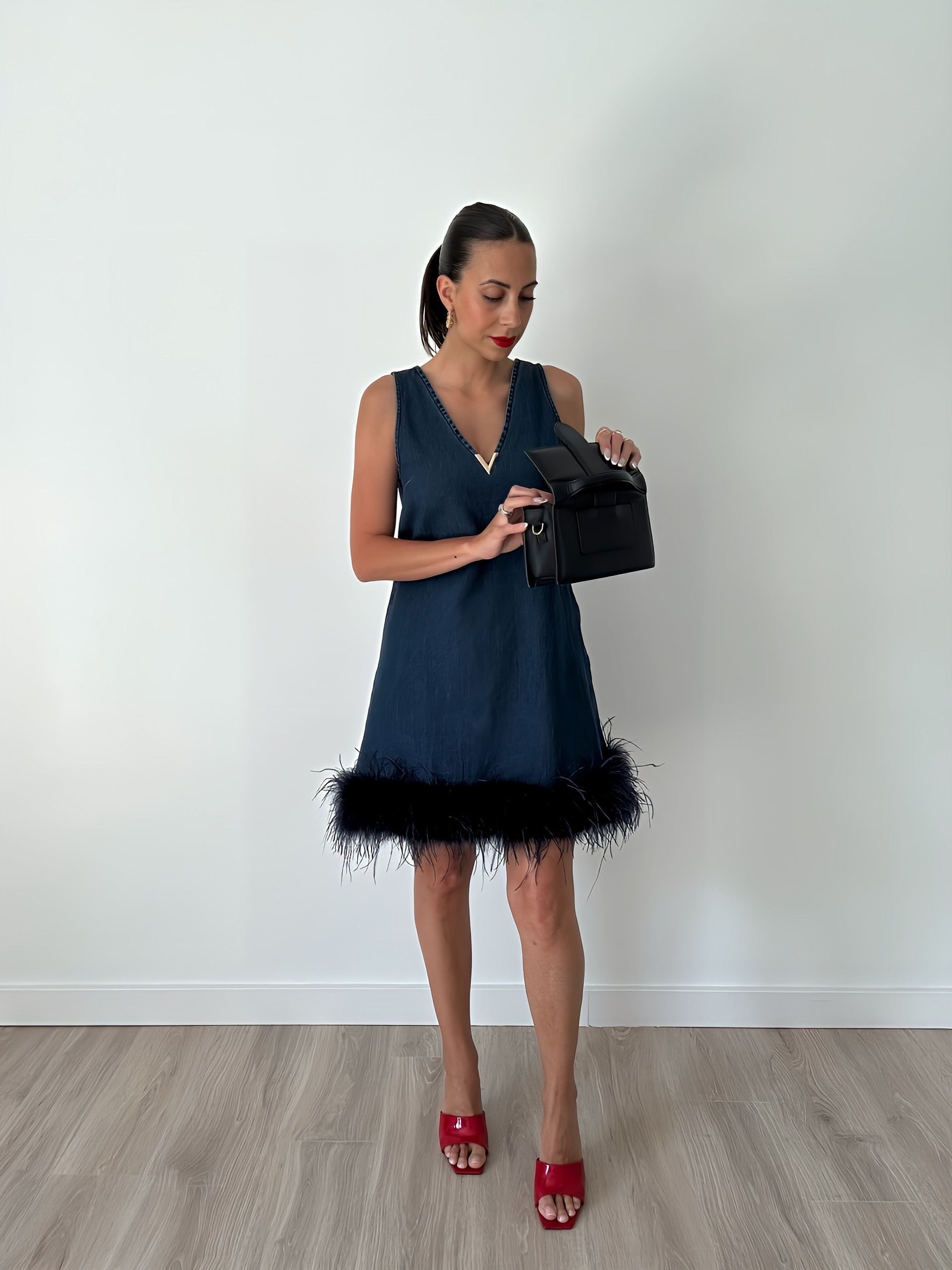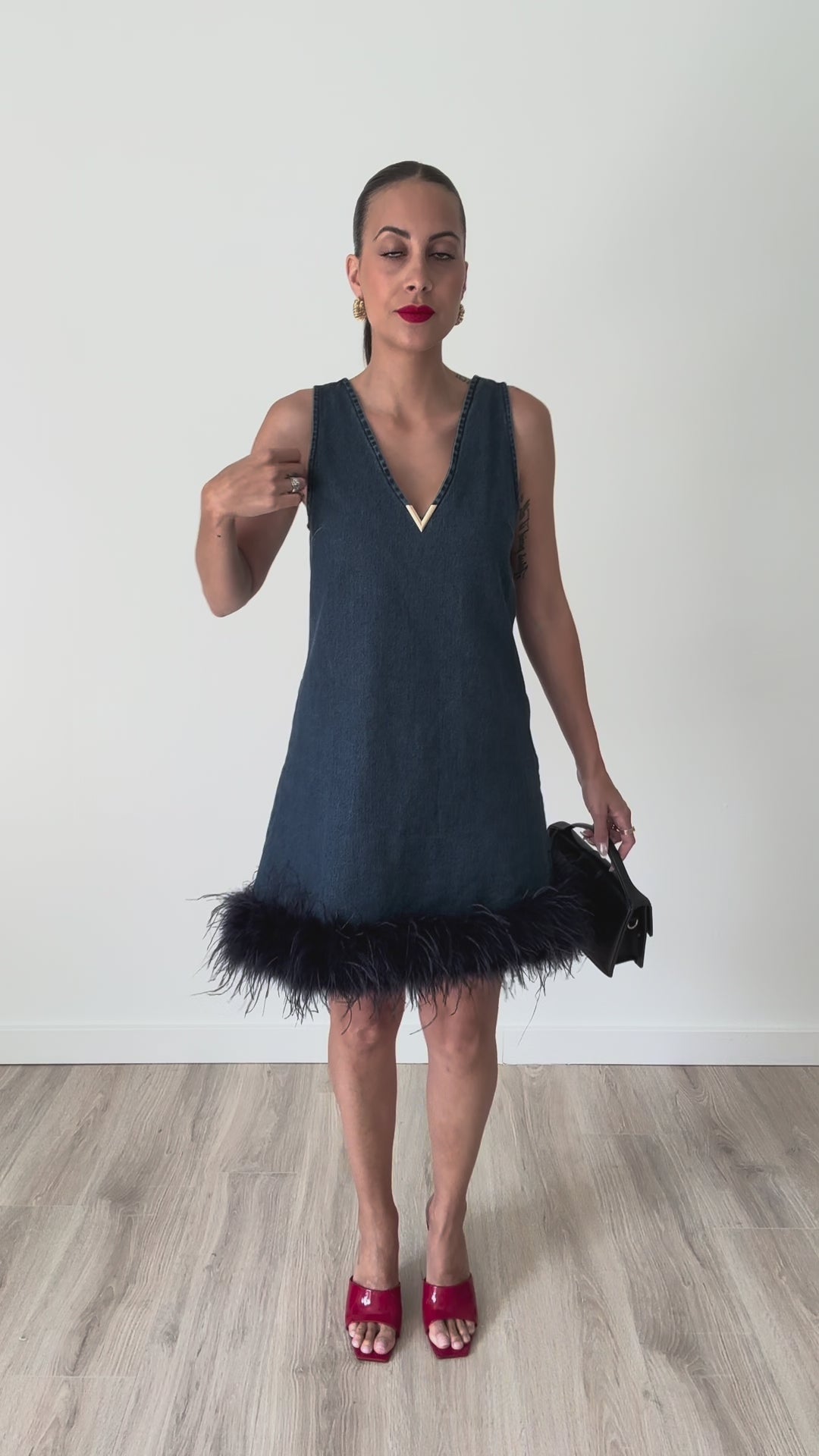 Features a side zipper and a V-shaped neckline detail for an extra feminine touch.
