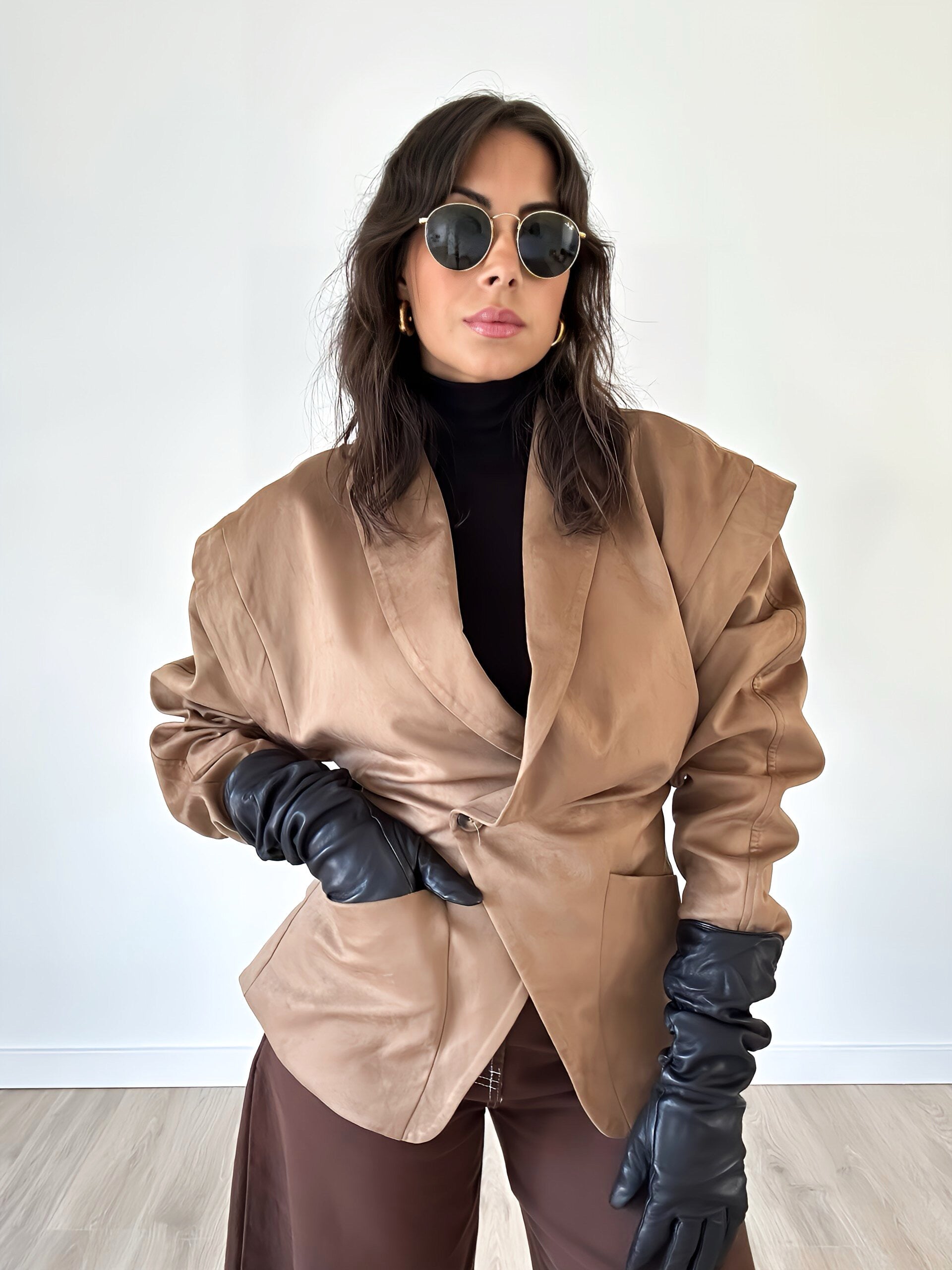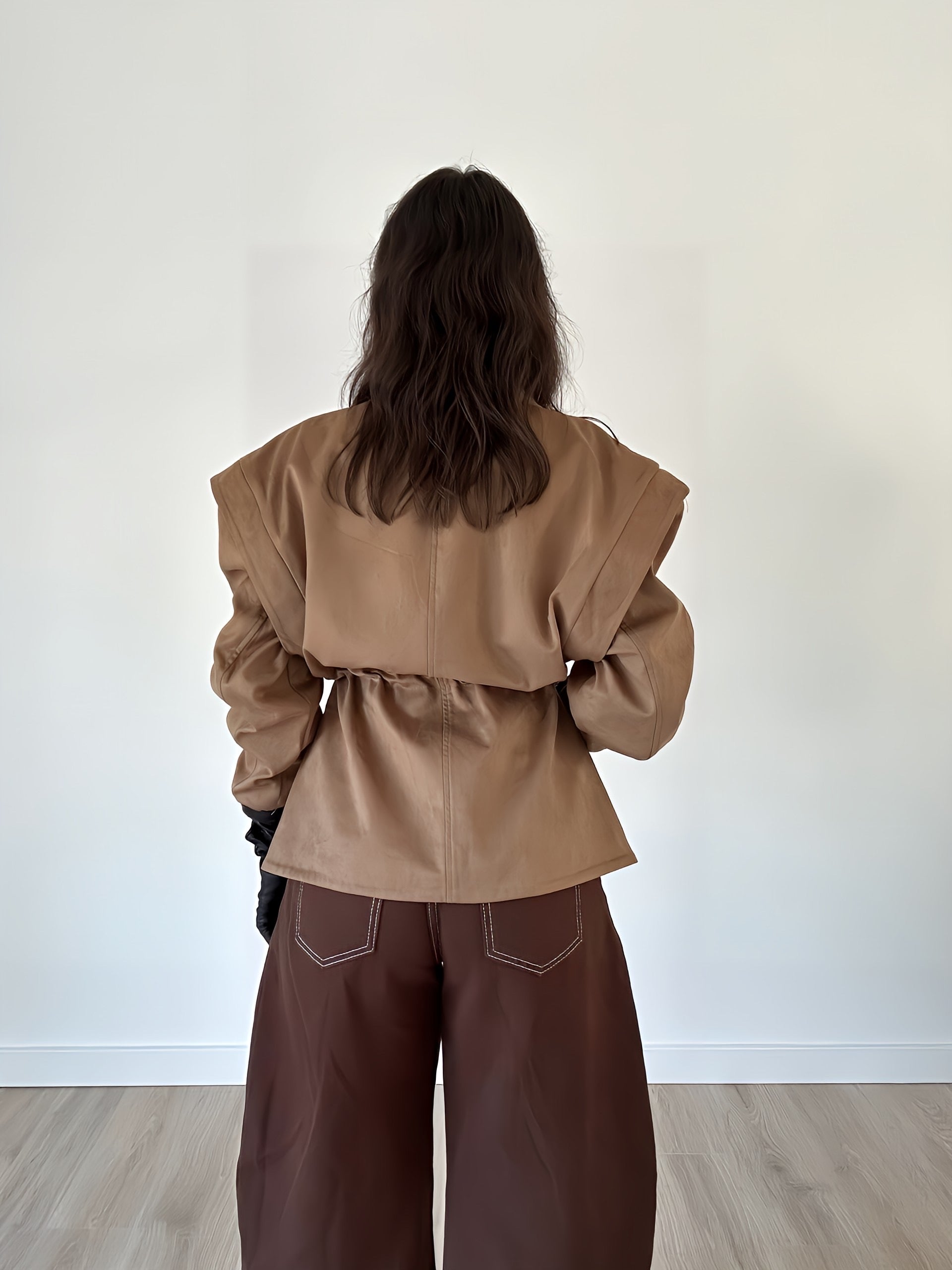The Camila oversized suede jacket blends the elegance of a blazer with the ease of a jacket. Designed for versatility, it can be styled loose for an oversized vibe or cinched at the waist with the hidden adjustable strings to refine your silhouette.