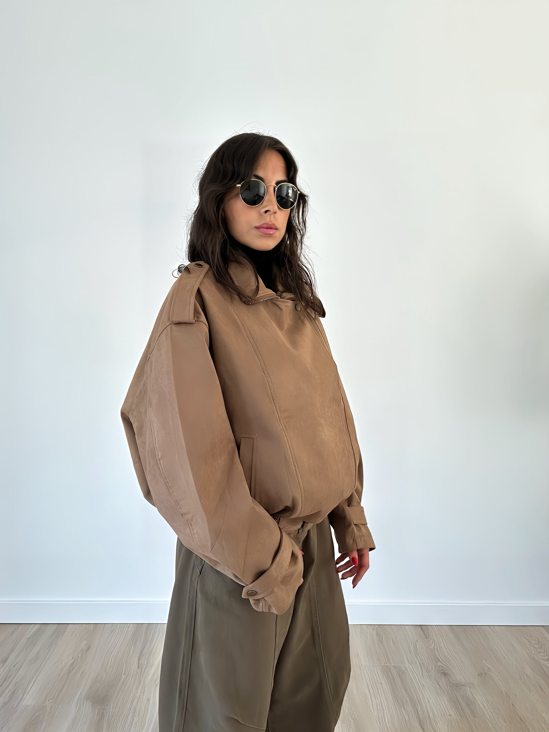 The Elisa bomber is a must-have statement piece. With its oversized cut and refined suede finish, it brings a chic yet relaxed edge to any outfit.