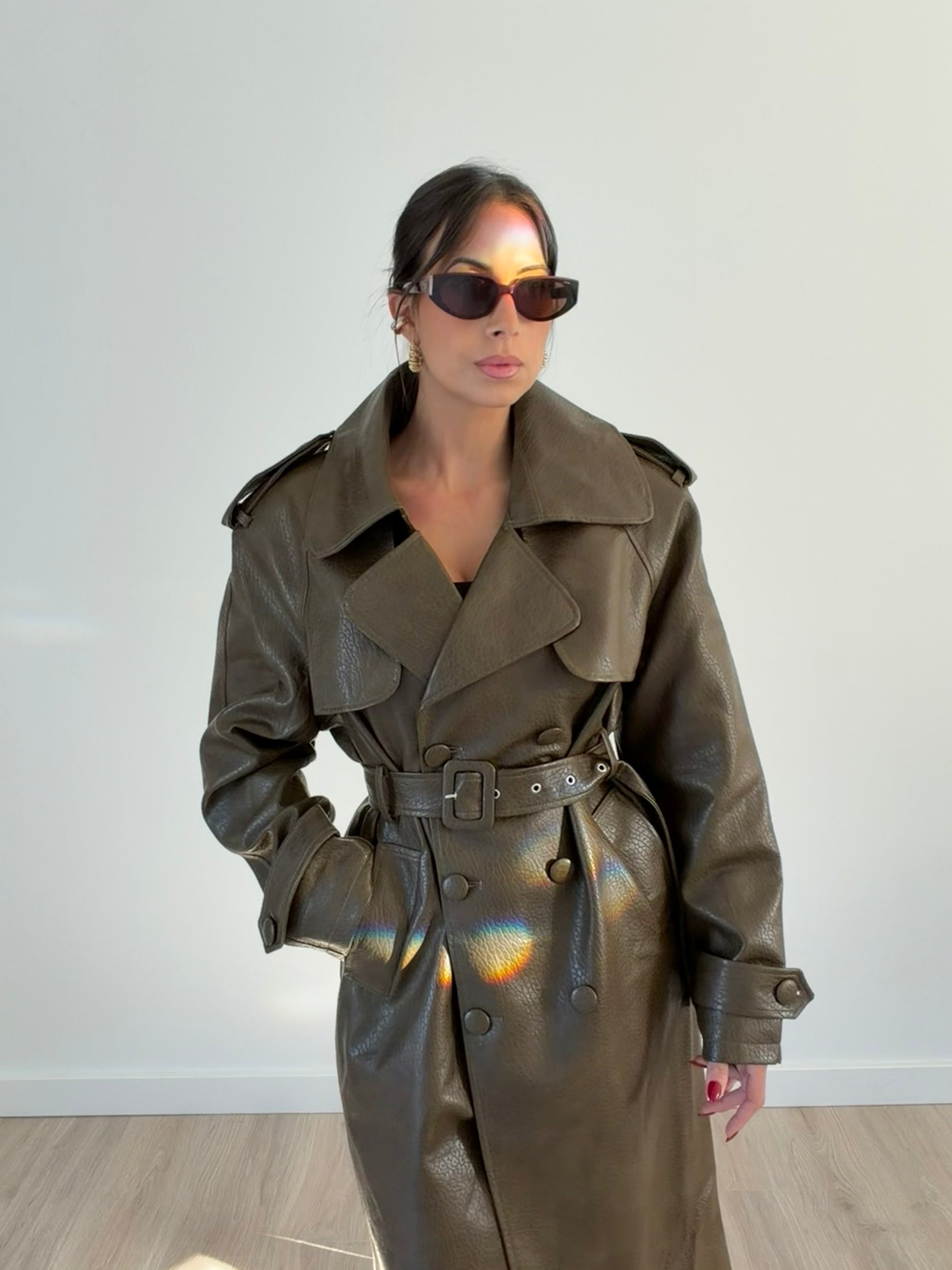 Crafted in a sleek army-green faux leather, it’s that perfect neutral that pairs with everything.