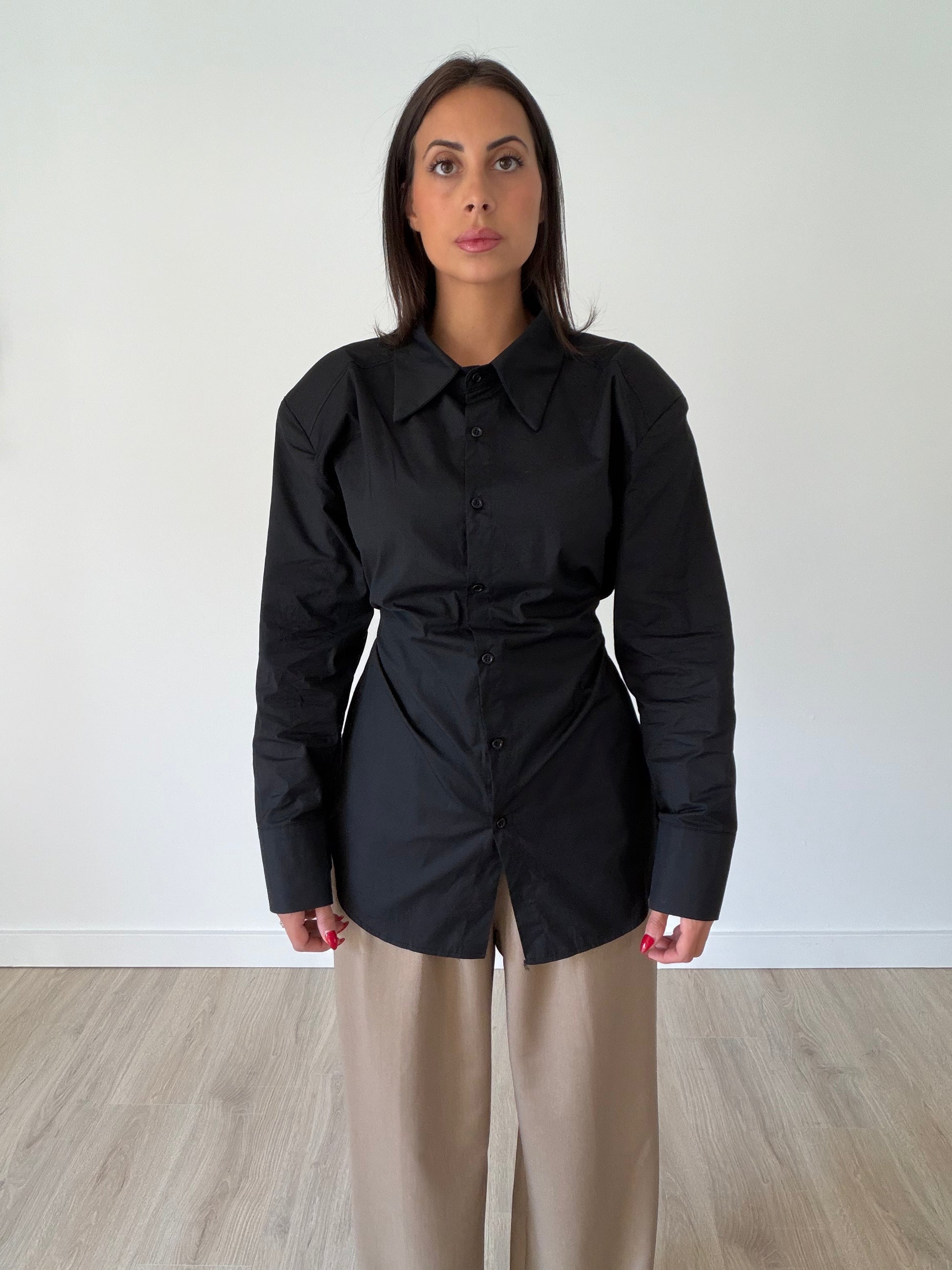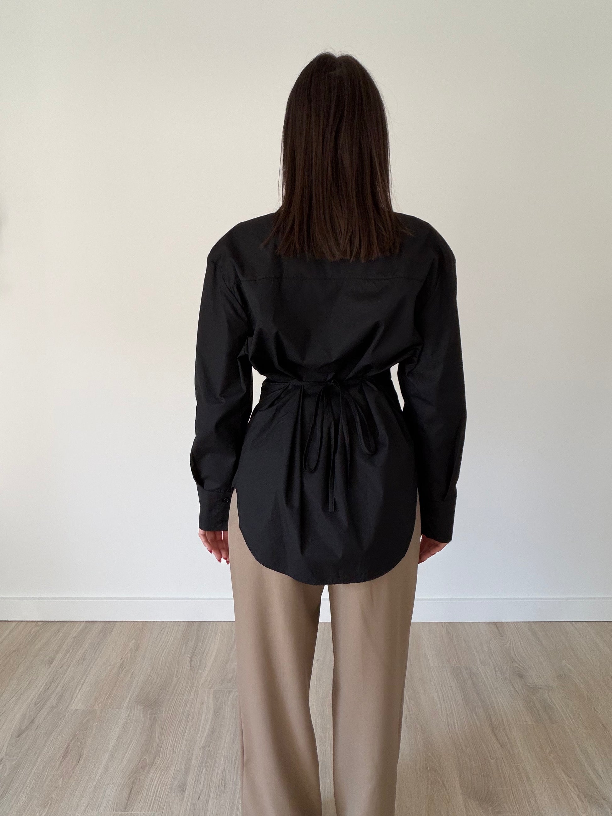 "Paola", the button-up shirt that’s anything but basic. Designed with built-in waist straps to gently cinch and define your silhouette, it flatters every figure while keeping a sleek, tailored look.